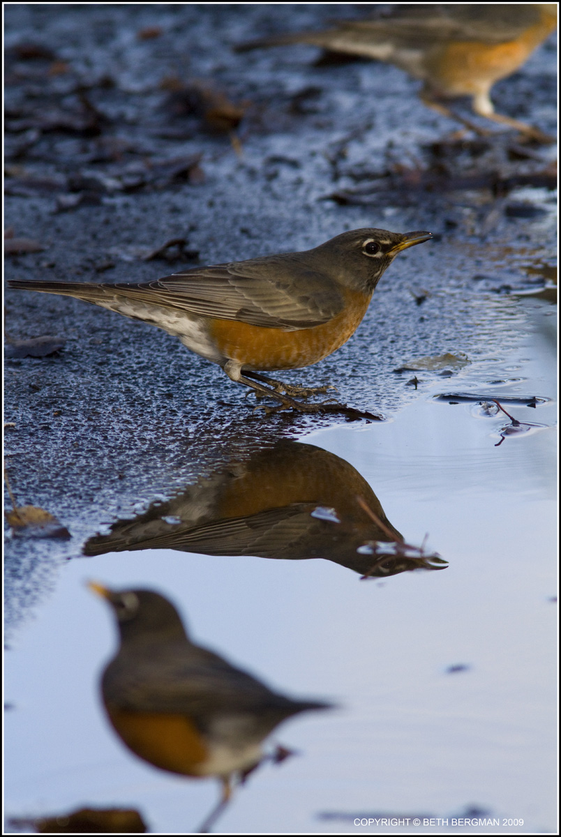 On Monday morning, I was getting my bike stuff ready to leave to ride to work, and I distinctly heard the loud chirping of a Robin! :) I went to the window and opened it and spotted the Robin in a nearby tree. :) The first sign of Spring!! :) It's always great to see the annual re-appearance of the Robins - - first you see one or two, and then all of a sudden, there are big groups of them - - like a Robin Reunion! :) They're all loudly chirping as if to be yelling "SPRING!! SPRING!!!" It's cool. :)